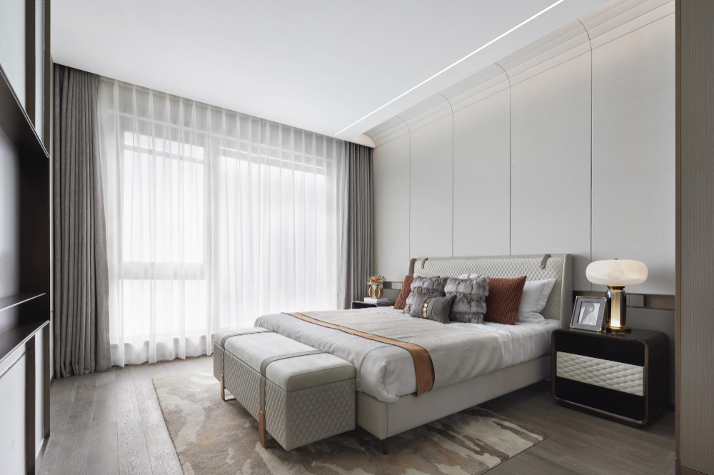 • פרטים דקורטיביים ייחודיים בראש המיטה, מראות ומשטחי מגירות.